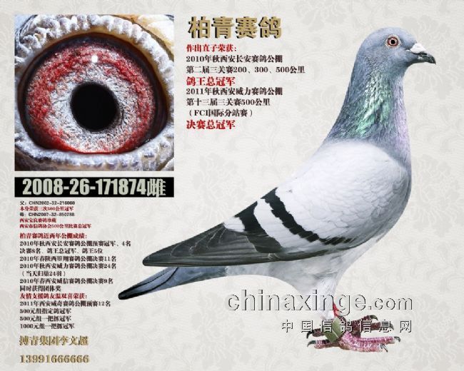 2012年威力预赛104名,加站赛76名为威力冠军平辈。从2010年长安公棚鸽王冠军,200、300、500公里4、8名;8名(乔羽鸽舍拍得)作出直女,获得2012年陕西神木光宇公棚预赛3名、决赛6名(由乔羽鸽舍作翔)。2011年威力公棚决赛冠军与2010年鸽王冠军同父母,都是6060的外孙。2011年威奇公棚预赛12名为6060直孙女,2012年新天平春棚决赛15名为6060直孙女。