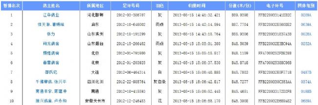 2013年安徽华汇赛鸽公棚决赛前10名图片