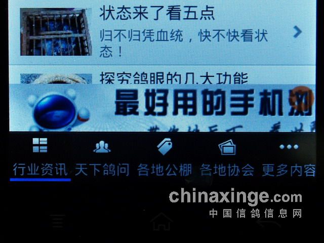 行业资讯、天下问鸽、各地公棚等部分窗口