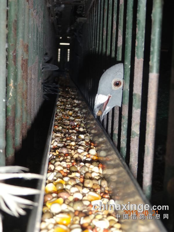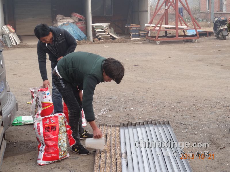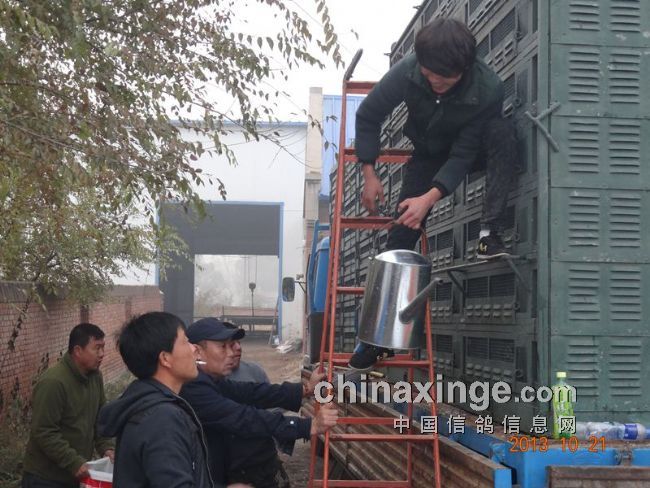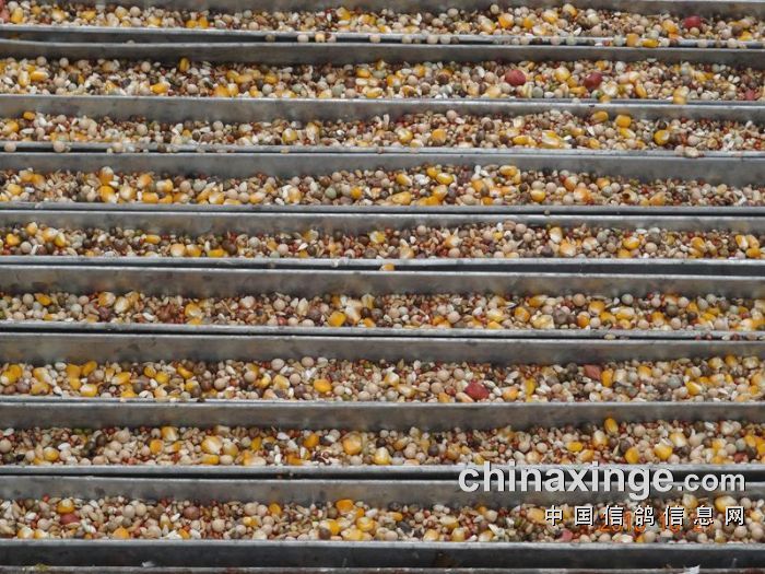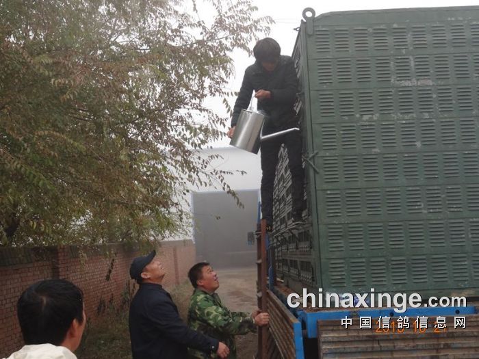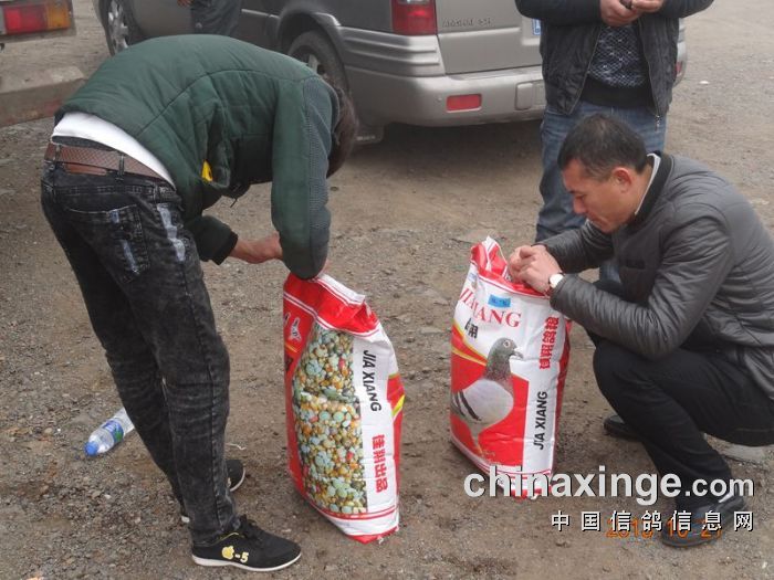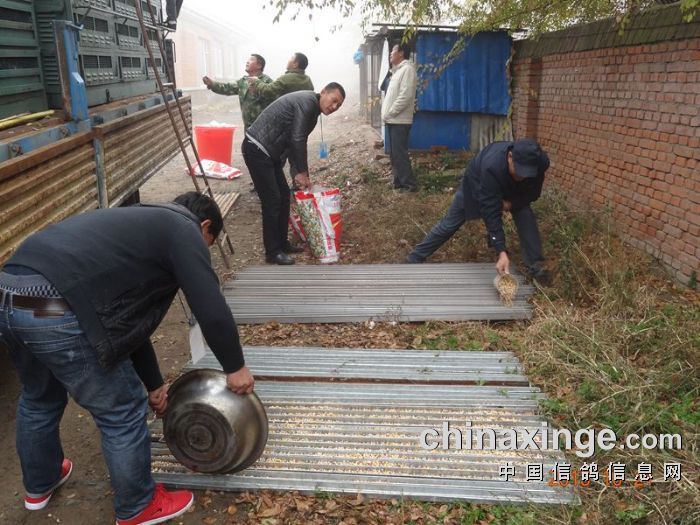21日上午9时准备喂饲压笼鸽的专用赛飞鸽粮