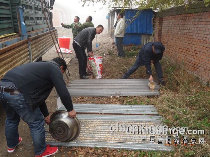 捷威公棚工作人员与鸽友代表共同做饲喂准备工作