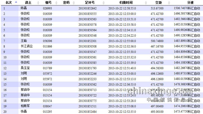 2013年北京海淀鸽会第二届“神鸟杯”三关鸽王大奖赛第二关500公里比赛,于10月22日早上7点18分开笼,司放地河南滑县,天气晴,无风。