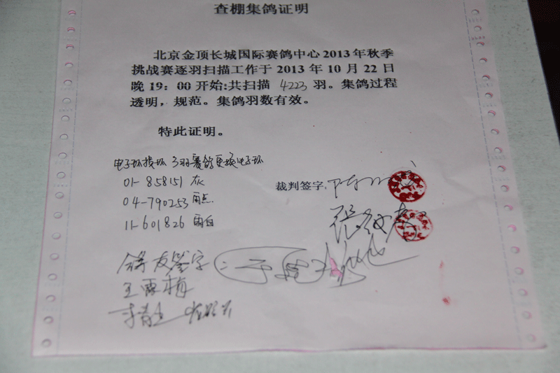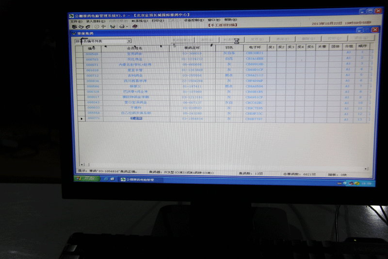 北京金顶长城国际赛鸽中心逐羽扫描现场(图片)