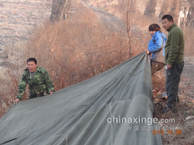 再次整理放飞笼下的苫布,以兔嵩草刺伤赛鸽。