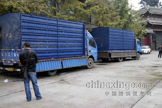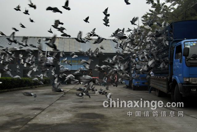 二零一三年十一月五日,成都地区有几十家竞赛单位的赛鸽车连夜奔赴放飞地,六日清晨到达指定竞赛地点进行比赛。
