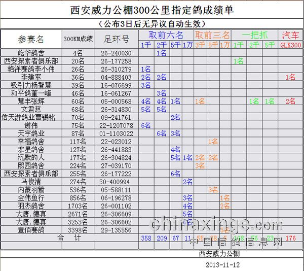 实际上前200名获奖鸽中陕西鸽子也不多,前十名中陕西参赛鸽仅2羽。