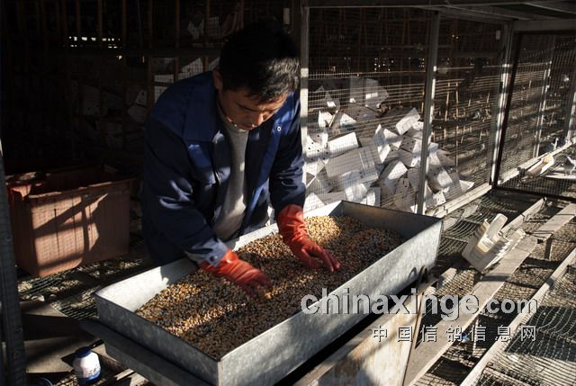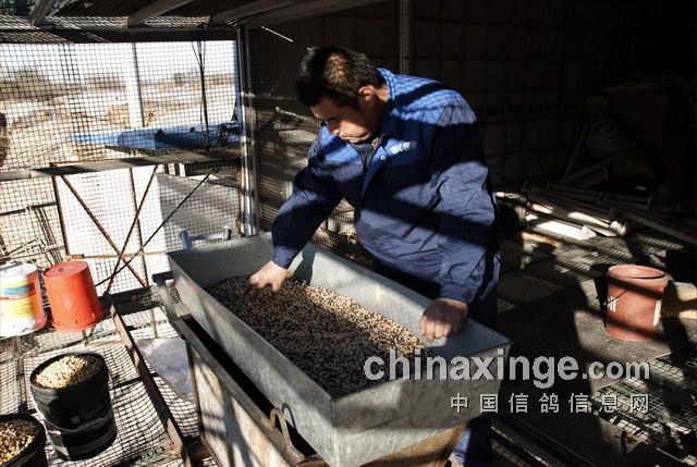 2013年11月17日上午,饲养员早早就为赛鸽开始准备食水,配比饲料。饲料种类是清除饲料加营养饲料和玉米混合,然后再加一些添加剂已便补充赛鸽营养。