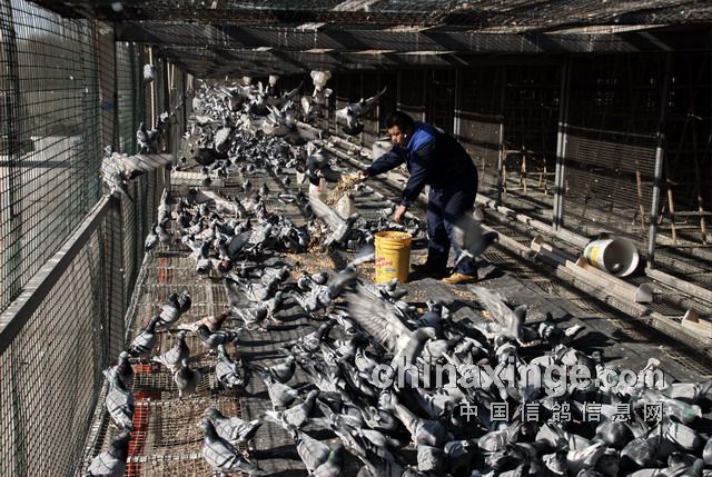 赛鸽进食完毕后都回到舍内栖架上休息,大概两小时后集鸽开始。