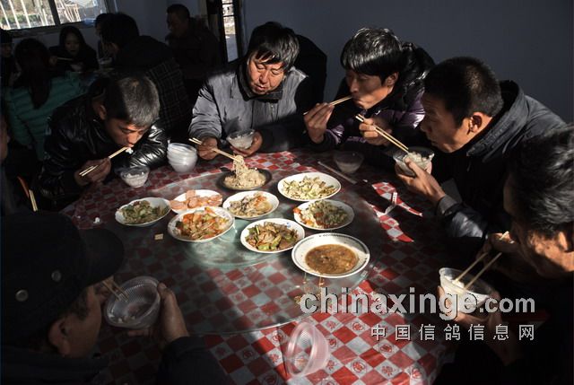 集鸽完毕天色基本黑了下来,裁判员在公棚食堂吃过简单的便餐,几道素菜,没有大鱼大肉,很是简朴,裁判和工作人员吃得很香。