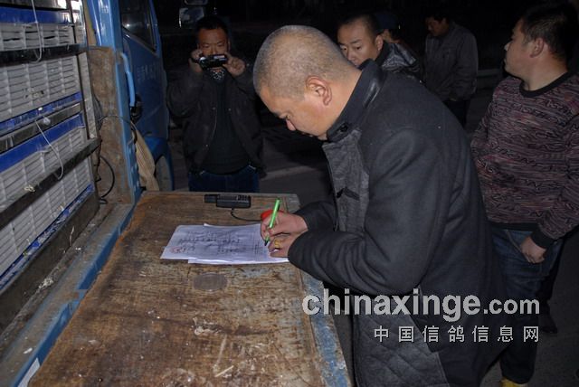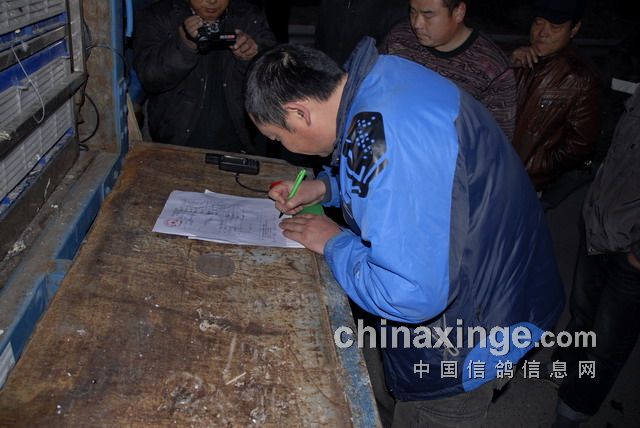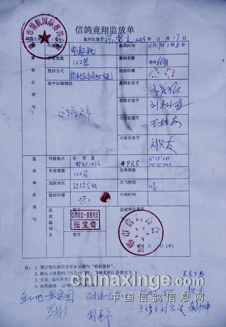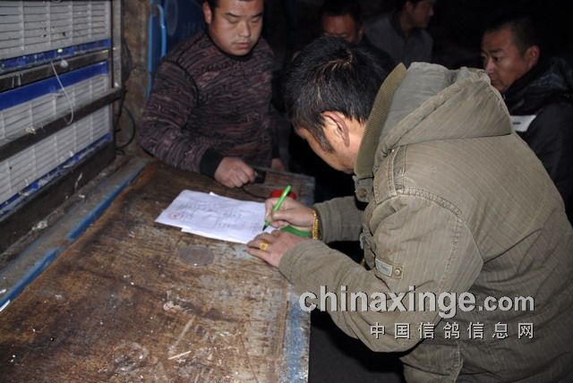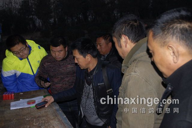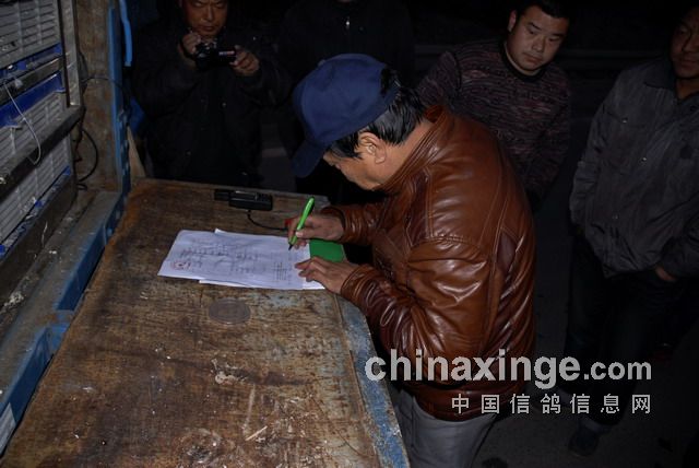 放飞前双方裁判员和鸽友代表分别在监放单上签名,并合影留念。