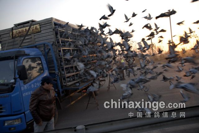 十几分钟后司放人员告别异地裁判员及监放鸽友返程。经过十几个小时的奔波天黑前返回公棚。