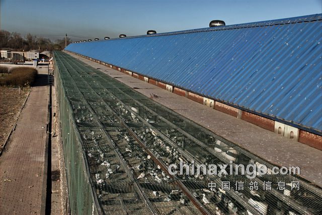 领航公棚全长一百五十米,可以说是大通棚。快到九点钟左右赛鸽开始在棚内从东面往公棚西面飞行,因为赛鸽饲料的搅拌间就在西头,赛鸽的嗅觉是很灵敏的,闻到饲料和添加剂的香气,赛鸽开始飞过来。