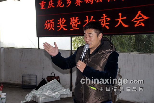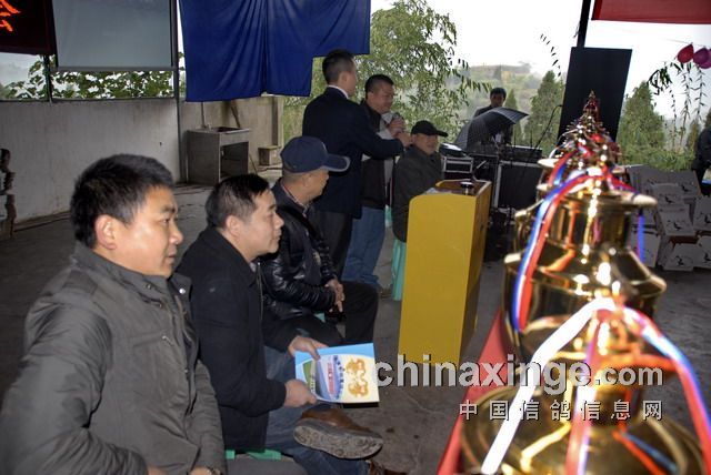 颁奖大会开幕后重庆市信鸽协会主席陈影群先生,副主席杨国华先生做了简短的发言,对龙乡赛鸽公棚举办的第二届公棚赛取得的圆满成功,对鸽友们所取得的好成绩表示祝贺!并邀请广大鸽友明年继续参加龙乡公棚竞赛,祝愿广大鸽友再次取得好成绩。