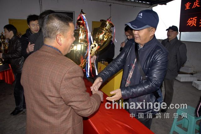 颁奖开始,重庆市信鸽协会领导和嘉宾为获奖者颁奖。