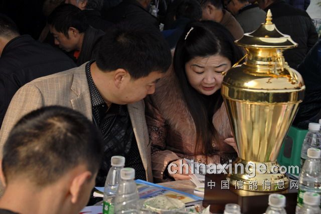 重庆市鸽会主席陈颖群先生为获奖者发奖