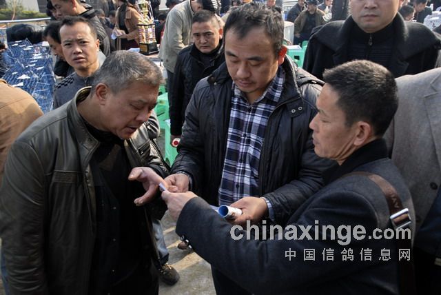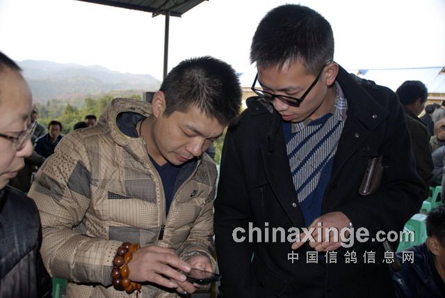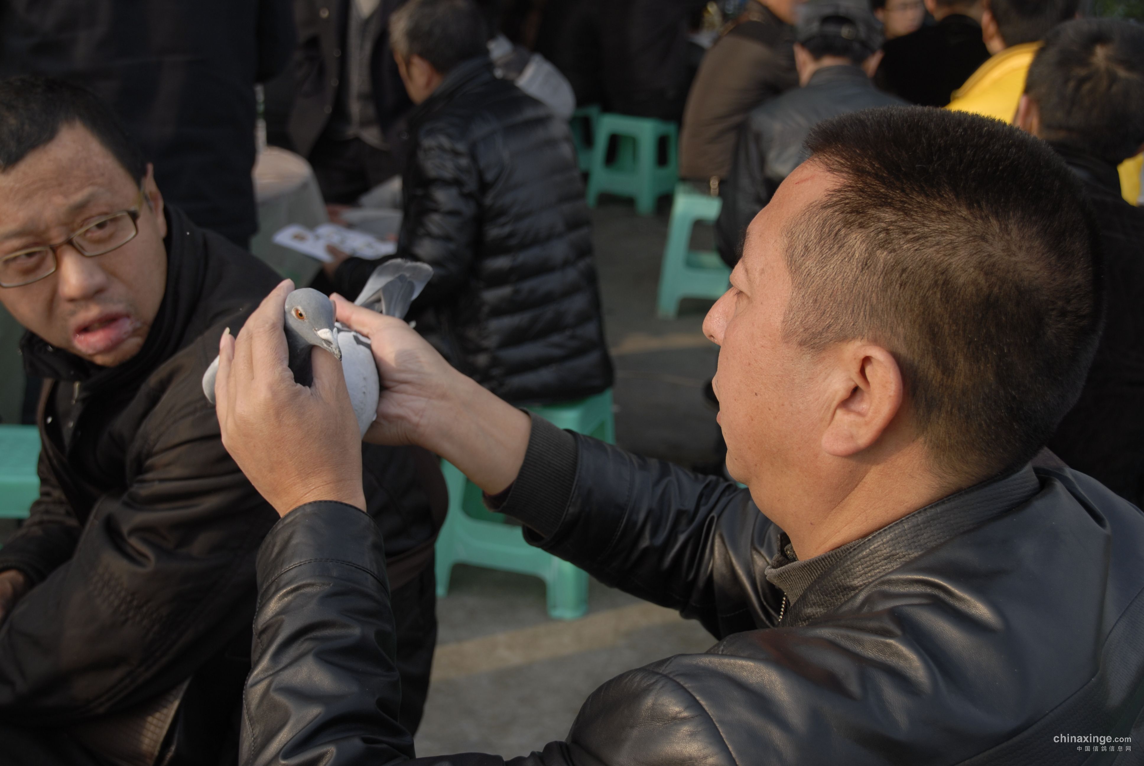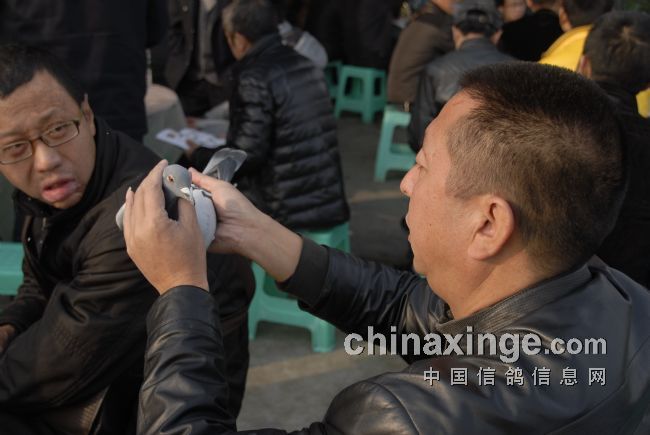 这是上海李琛的一羽鸽子,鸽主在观看心爱的赛鸽