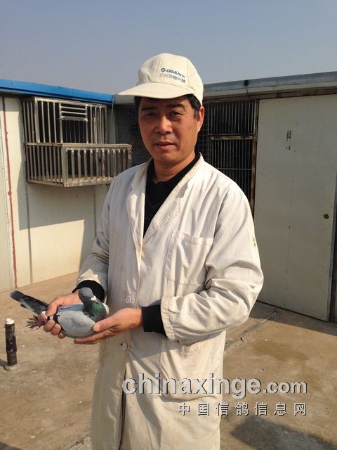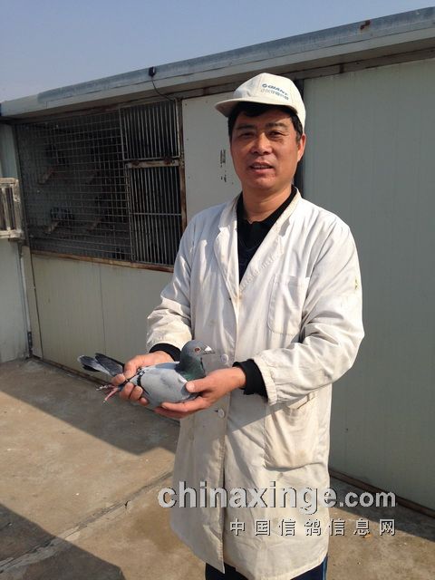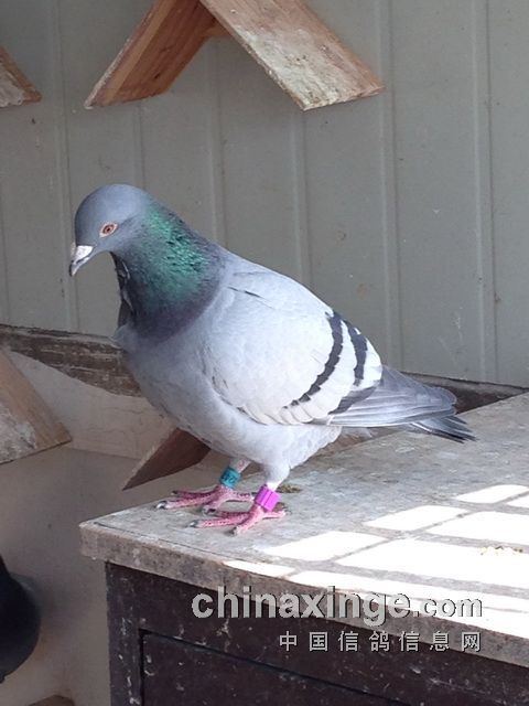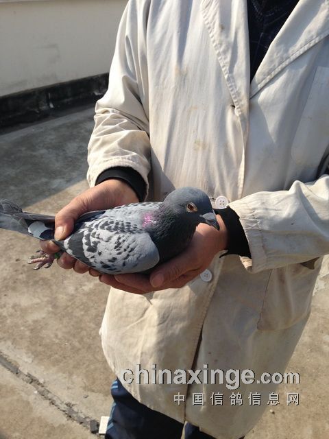 市B组幼鸽特比冠军2013-09-232472,灰,砂眼,公鸽,来自杨氏兄弟赠送的一窝蛋作育,父母为种鸽00-001377老翻毛回血作出!