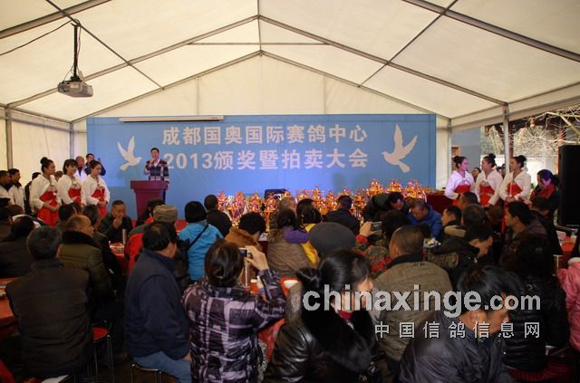 颁奖大会由中国著名信鸽拍卖师薛小健先生主持,饶少华先生宣读获奖鸽名单,蒲朝进先生为获奖鸽友颁奖。