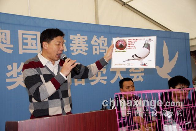 首先进行拍卖的是加站赛前八十七名单号获奖鸽,然后拍卖决赛前四百名单号获奖鸽。拍卖会首先由薛小建先生主持,加站赛获奖鸽起拍底价二千元,十名以后起拍底价五千元,四十四羽加站赛单号获奖鸽很快排出。