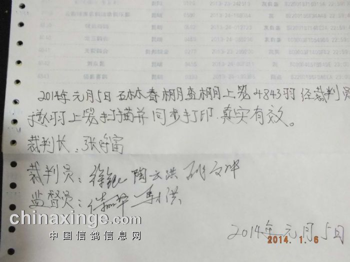 2014年1月5日,云南石林春棚进行10公里训放查棚上笼工作,经裁判员审核扫描,共计集鸽4843羽。今日(6日)早上8点50分,在北大村开笼放飞,截至10点45分,已经归巢扫描3886羽。以下是上笼现场图片: