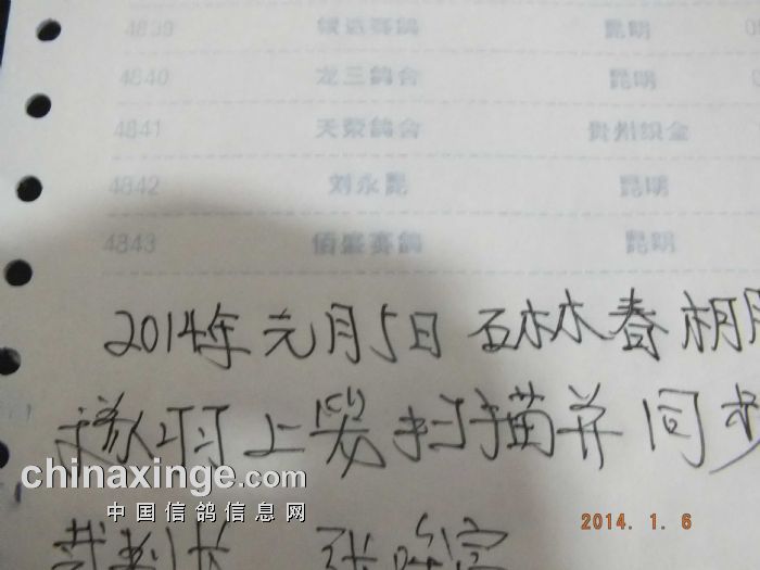 2014年1月5日,云南石林春棚进行10公里训放查棚上笼工作,经裁判员审核扫描,共计集鸽4843羽。今日(6日)早上8点50分,在北大村开笼放飞,截至10点45分,已经归巢扫描3886羽。以下是上笼现场图片: 查棚纪实(1)-上笼