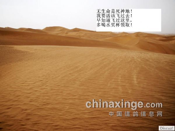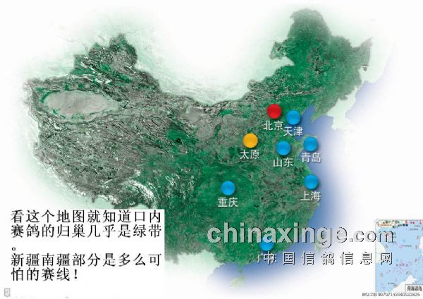 目前我国口内地区已经成立了好几千个赛鸽公棚,集鸽数量几千羽、比赛距离长达600公里(含加强赛),归巢率很不错。但是,新疆南部主要在喀什地区和克州地区谁都不敢兴建一个正规赛鸽公棚。原因很简单,南疆全是戈壁滩和沙漠、山区,赛鸽归巢率很低、分速不高,鸽友第二年不敢送幼鸽参赛!