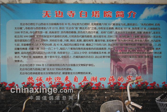 “文化,乡情是最好的粘合剂,大家虽然道不同志趣不一,但却抛不开这两样。白塔是太谷的象征,是太谷最好的古迹景点之一,却有很多太谷人未曾一游,这是很悲哀的事情。活动当天,不少朋友尤其鸽友更坦言,十之七八都没想过来看看自己家乡的白塔,当他们在会馆的展览室看过晋商时代的遗物后,无不感叹。即便结合自身养鸽赛鸽,是非成败,无处不受诚信左右,无诚不立,于赛鸽同样适用。”