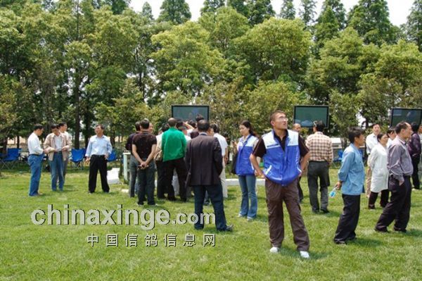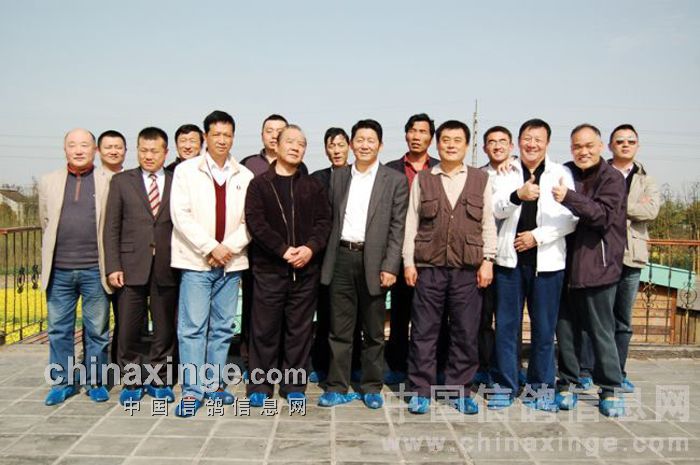 图片说明:大手笔买下12年威力冠亚军的土豪鸽友田栓牛(中戴帽长者)与鸽友游园