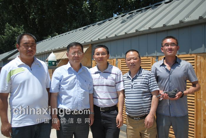 图片说明:与合伙人,《聊天预报室》技术信息提供者乐博士,寄养人上海刘道荣,鸽友孙凤山留影于北京大兴《百家讲坛联合鸽舍》比赛棚前。