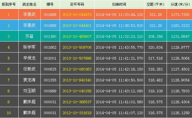 在首关300公里比赛中,名家李景武先生包揽前三,荣获“冠亚季军及指定鸽100元组冠军、200元组冠军”的骄人战绩,他在前12名里打进7羽,可见其实力不凡。