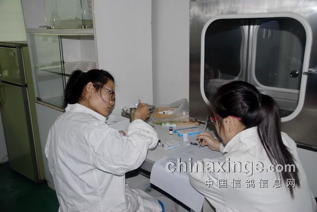 有的公棚鸽子发病现成的鸽药不能解决,我们可以采取病样分离,分离完以后我们再做药物敏感性试验,然后根据药的试验结果再产生配方,这样子的药品治疗效果一定准确。所以我们的化验室就有七八个专职人员负责这项工作。
