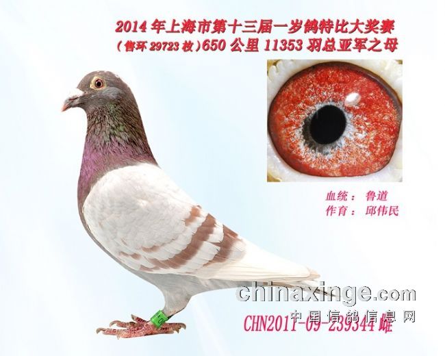 育种很关键,俗话说:一滴血是精髓。养鸽首先要有好的种鸽,这是鸽界的共识,邱先生自然也不例外。他以一位企业家的眼光,首先了解上海赛鸽界的现状及国际赛鸽界发展的趋势,经过详细考察,先后引进欧美最实战鸽系、欧洲最顶级的赛鸽,即全国鸽王和欧洲鸽王,甚至是包括鸽王及其家族系列。以克拉克詹森老白眼、盖比、鲁道·克拉森为核心的种鸽队伍,利用自己对种鸽作育理念的认识,用同血系种鸽近亲作育留种,经过定向育种选择,形成以自己育种为主的特色种鸽群,先后获得上海许多高位奖项。支援鸽友:2007年取得上海市幼鸽排名赛亚军、五名;2009年第十三届幼鸽特比环亚军;2014年春上海市500公里联翔28192羽总亚军。