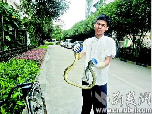 大花蛇闯进小区 广东厨师捉蛇正好做成下酒菜(图)