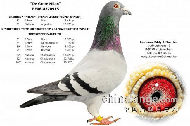 图片说明:伟大米兰,米兰直孙,来自超级克拉克血系,作出子代获得查特鲁国家赛18725羽57名、查特鲁国家赛22718羽62名、查特鲁国家赛20517羽145名。