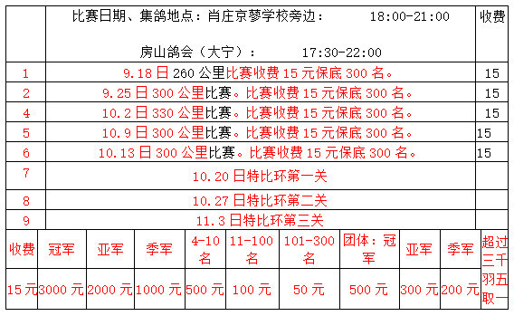 2020年北京房山区信鸽协会10月20日进行集鸽,10月21日放飞特比环第一关比赛。