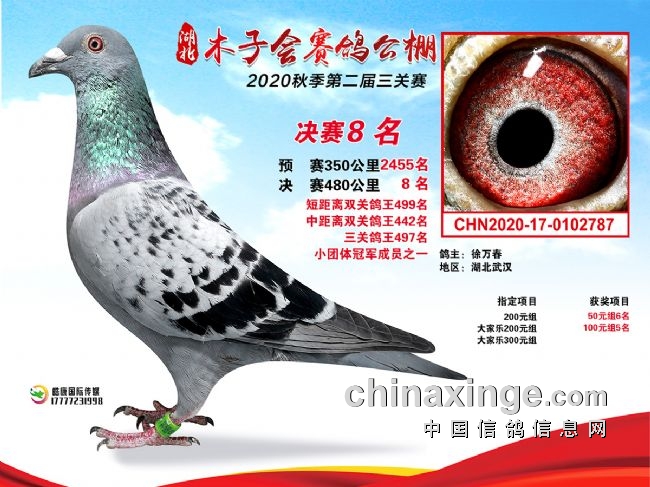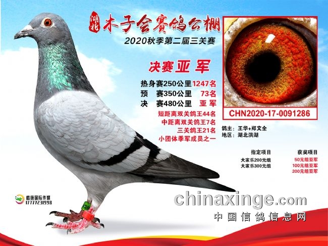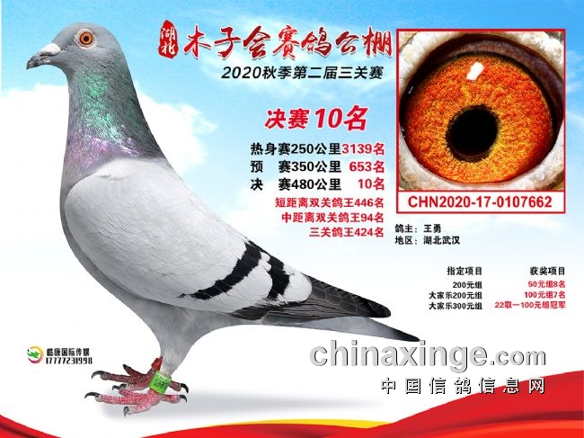 湖北木子会公棚2020年秋决赛获奖鸽 1—100名