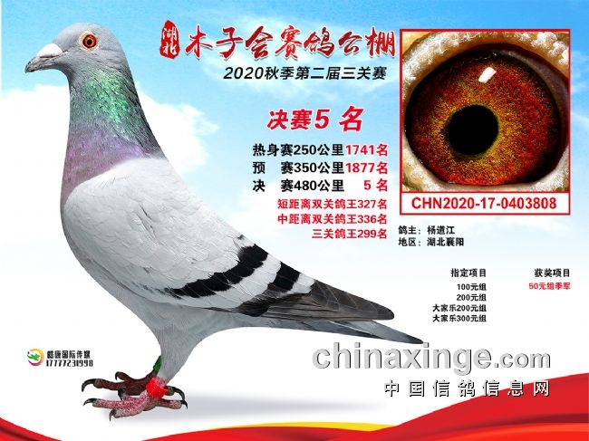 湖北木子会公棚2020年秋加站赛获奖鸽 1—50名