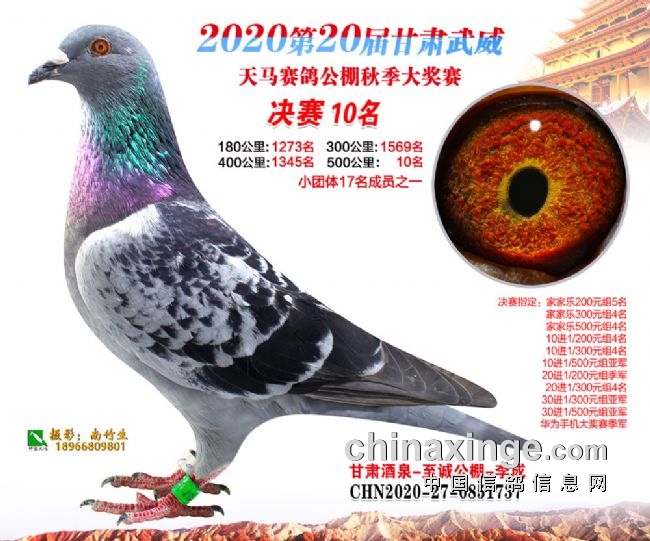 2020年第20届甘肃武威天马赛鸽公棚秋季大奖赛决赛前十名