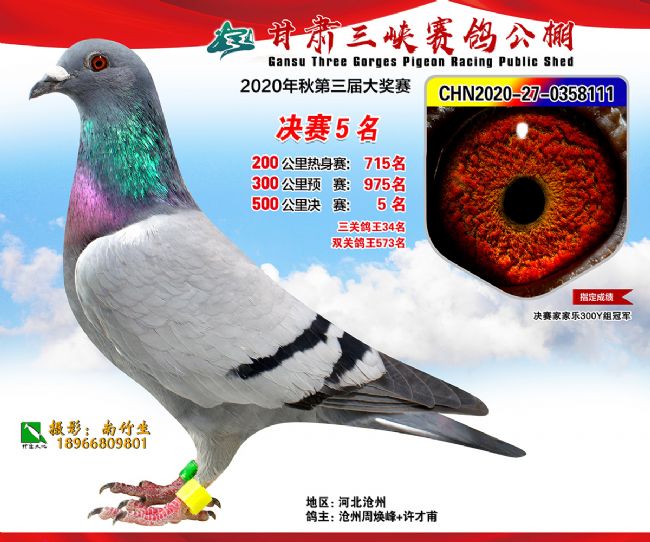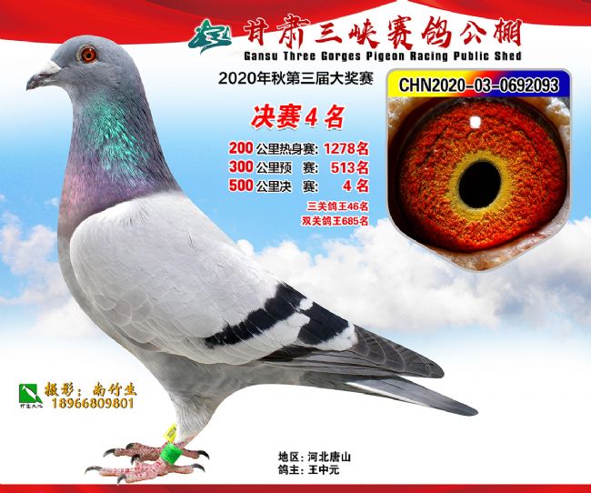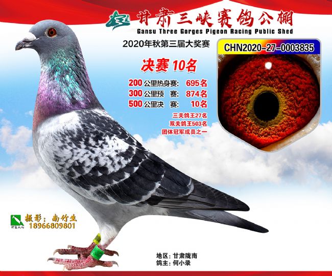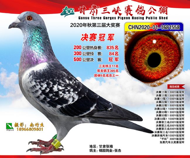 2020年甘肃三峡赛鸽公棚第三届竞赛已顺利落下帷幕,名家强豪,勇猛战鸽,赛绩辉煌!大西北强豪锦园鸽业-张杰的2020-01-1681558雨点鸽获得决赛冠军,免费汽车大奖赛冠军及15项指定冠军,成就17冠王,成为2020年大西北鸽界最耀眼的明星。此外,锦园鸽业-张杰还获得13、63名等6个入赏名次。甘肃陇南何小录获得决赛10名,同时入围三羽赛鸽,拿下团队冠军,赢得免费路虎极光汽车一辆。甘肃皋兰姚财祥的2020-27-0942252灰鸽有速度有耐力,飞出了一关16名、二关496名、三关115名,最终以3103.4286米/分的总分速获得三关鸽王冠军。