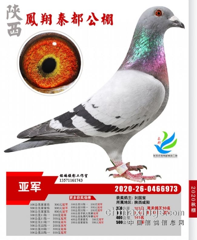 树立行业新风,优化赛事环境;打造公棚品牌,共建诚信秦都。2020年陕西凤翔秦都赛鸽公棚第六届秋季大奖赛,经过一关200公里、二关300公里、三关400公里、四关500公里以及520公里加站赛多重考验,最终圆满落幕。在决赛2627羽赛鸽中脱颖而出斩获冠军的是鸽友杜小刚的一羽雨点,该羽战鸽厚积薄发,前三关表现平平决赛一马当先!获得决赛亚军的是咸阳鸽友刘国宝的一羽灰鸽,该羽赛鸽同时获得双关鸽王10名、精英赛冠军,豪夺16项指定冠军,堪称大赢家!