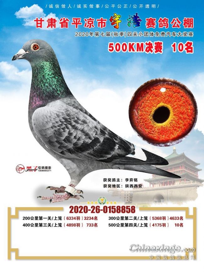 甘肃平凉宇浩公棚2020年获奖鸽同步拍卖会