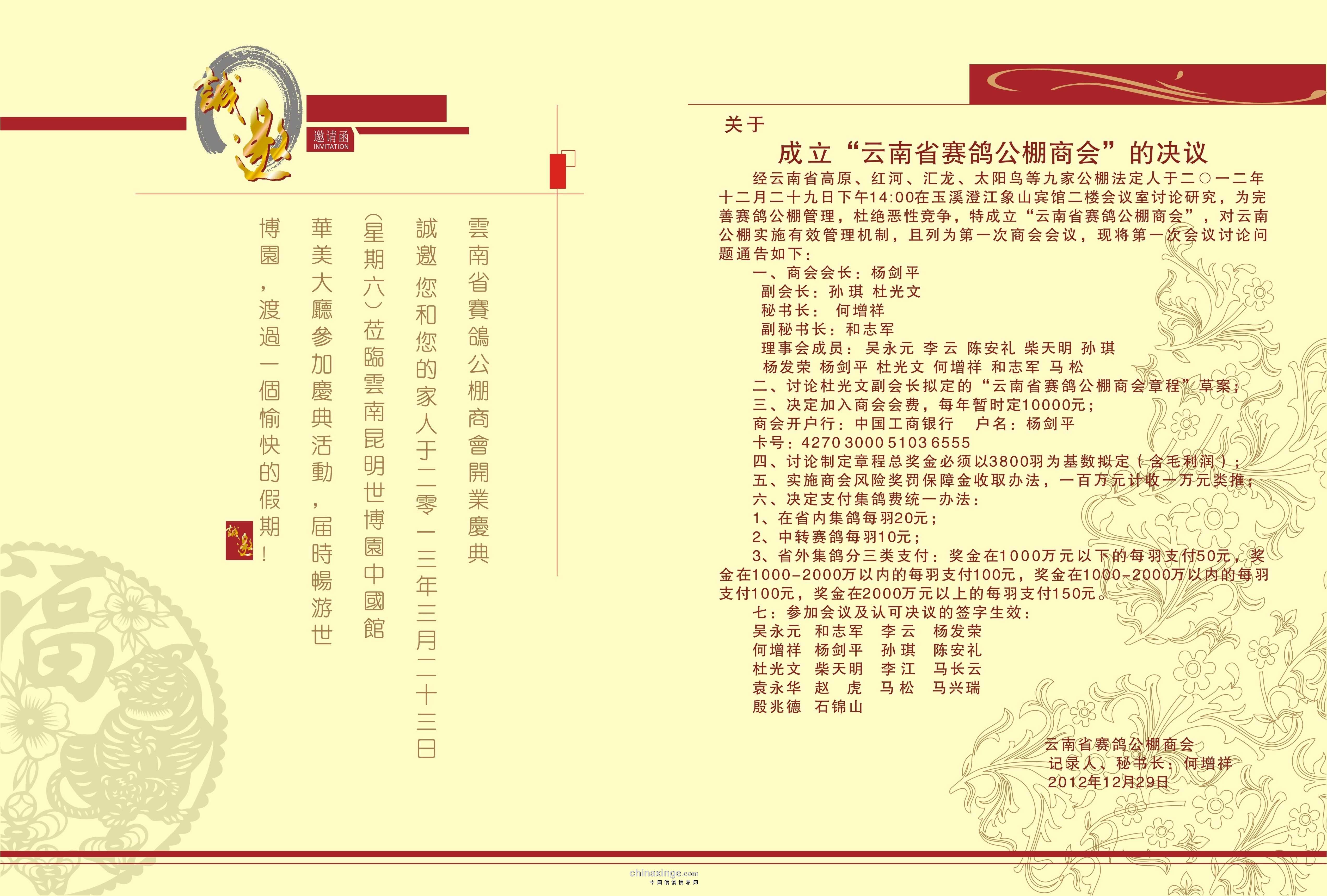 诚邀您和您的家人于二零一三年三月二十三日(星期六)莅临云南昆明世博园中国馆华美大厅参加庆典活动,届时畅游世博园,渡过一个愉快的假期!