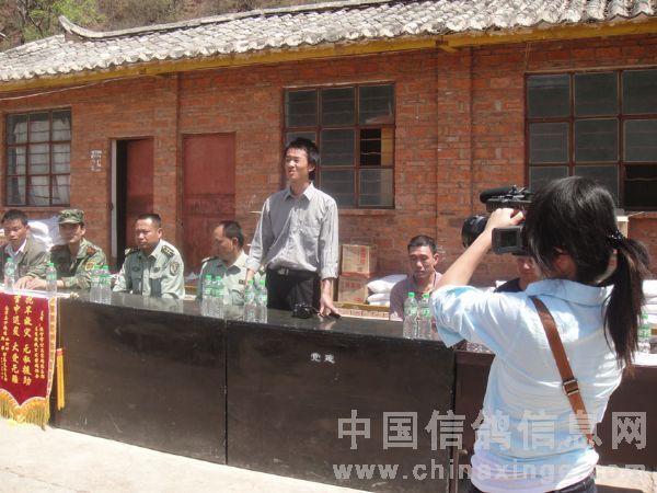“血色天空”鸽友在给乡亲们讲解,此次鸽友爱心义捐的详细情况。当地广电局小张记者,也不辞辛苦的用镜头见证中国鸽友的真爱!谢谢她!