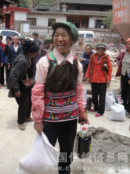 收到鸽友义捐的爱心粮油,彝族大姐开心的笑了!