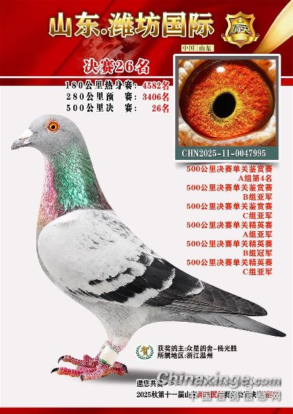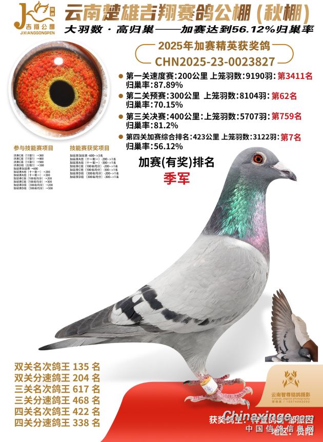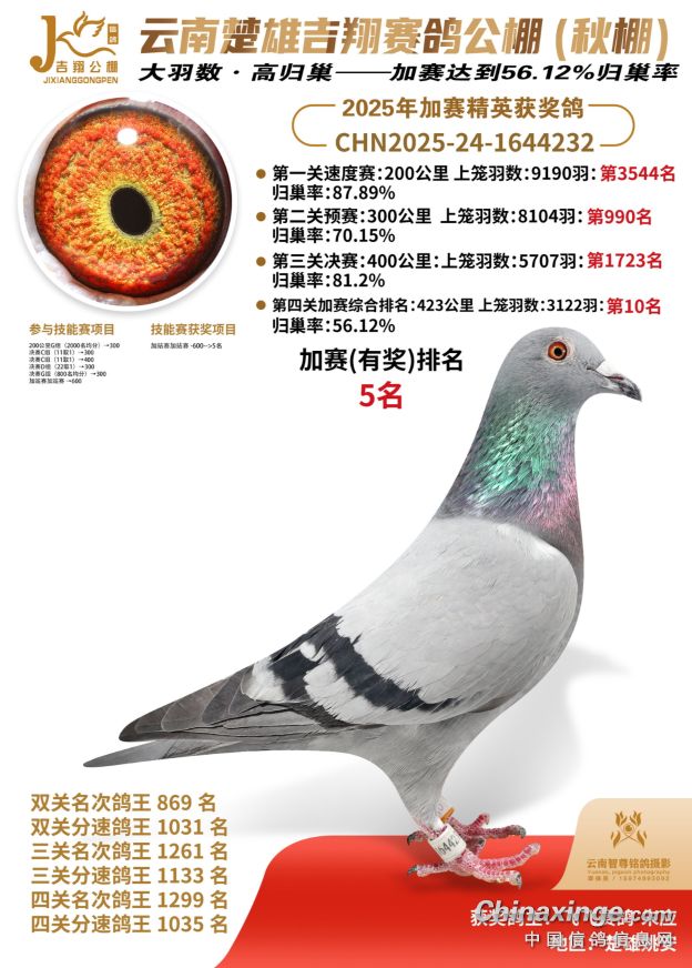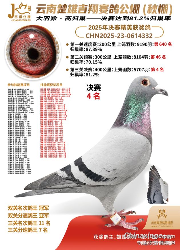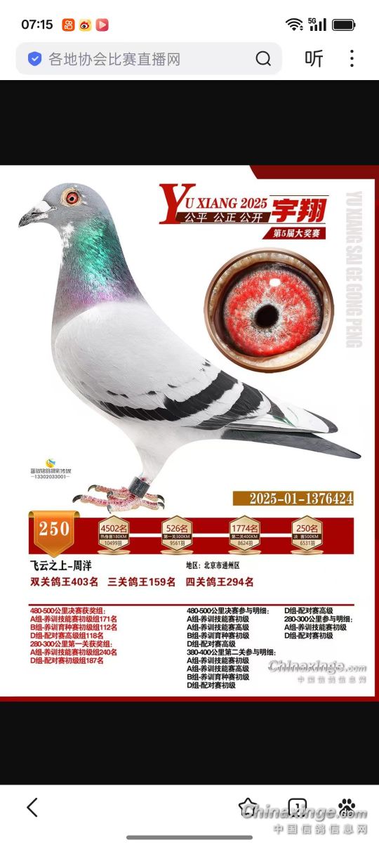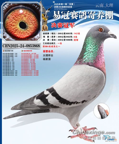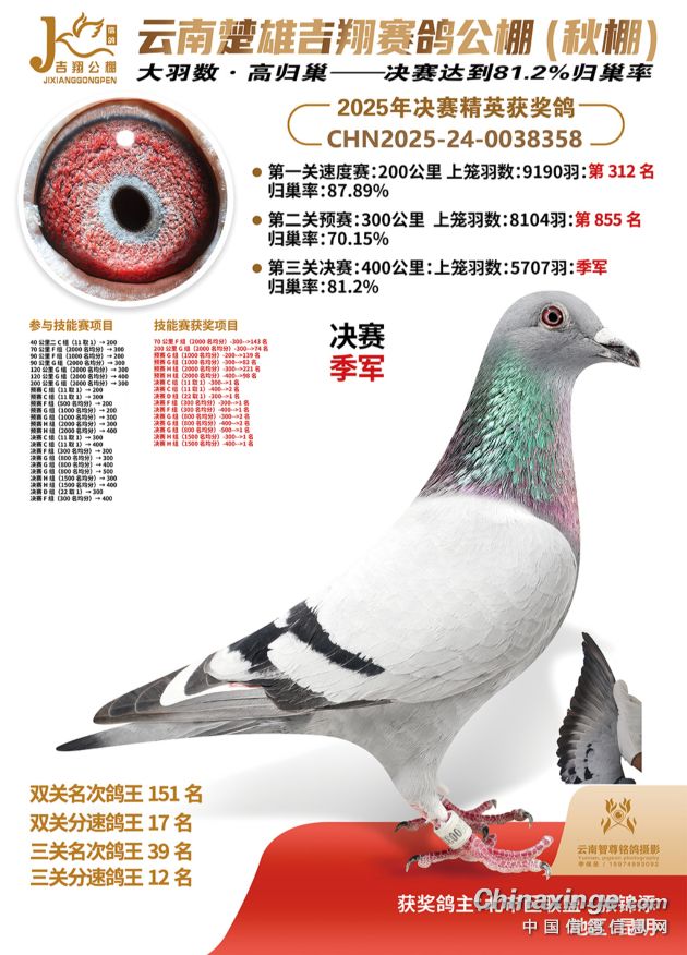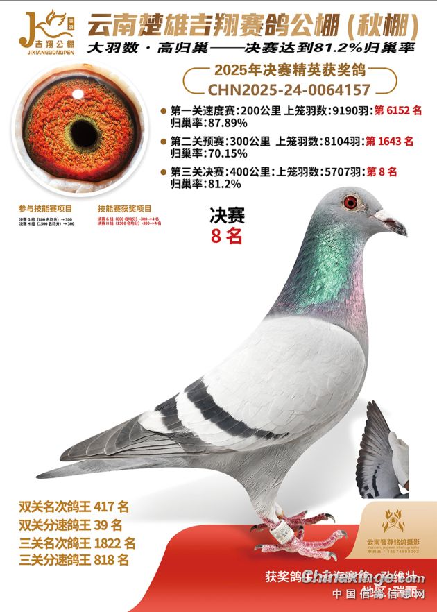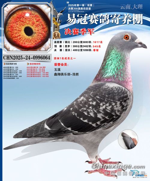 今年春赛300公里83名,400公里28名,羽数较少1500羽。