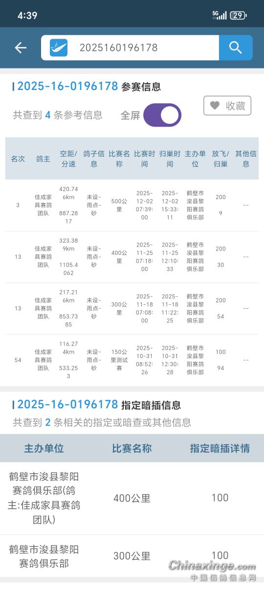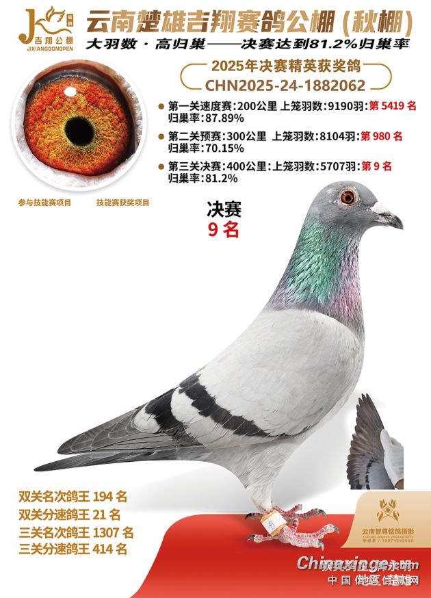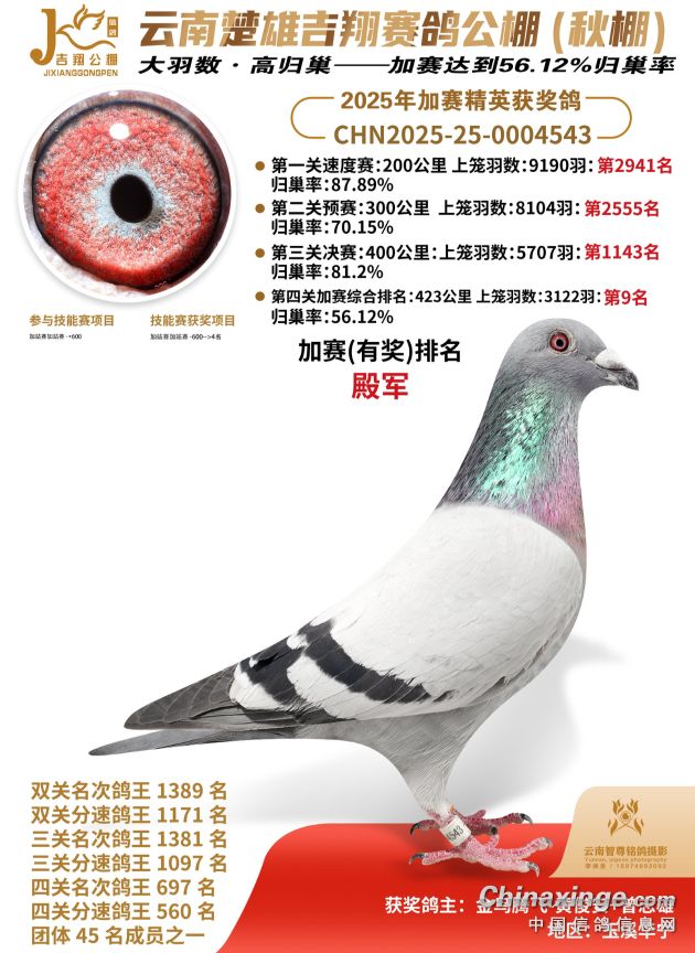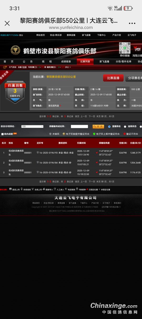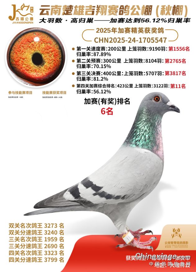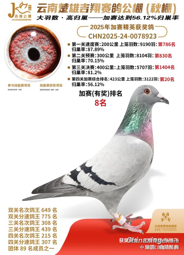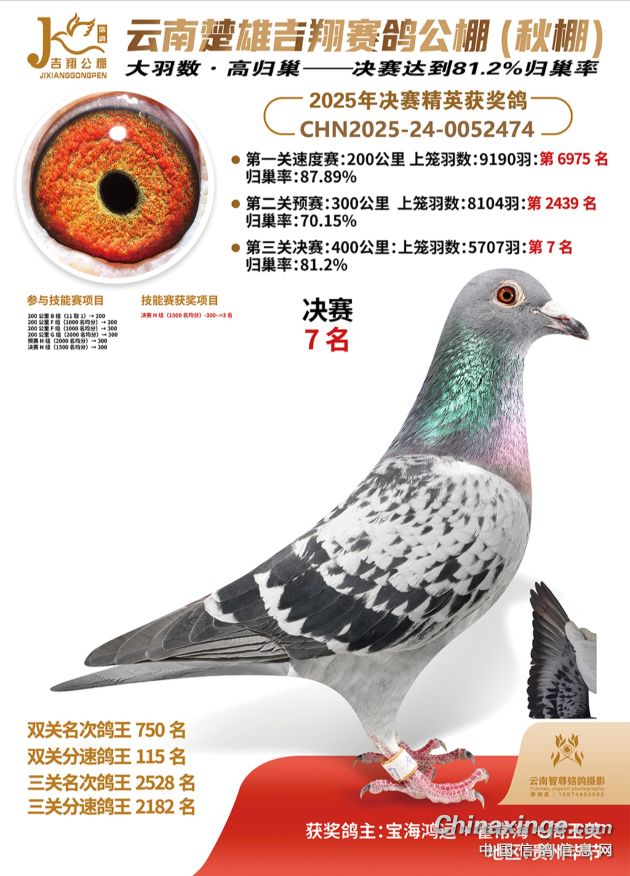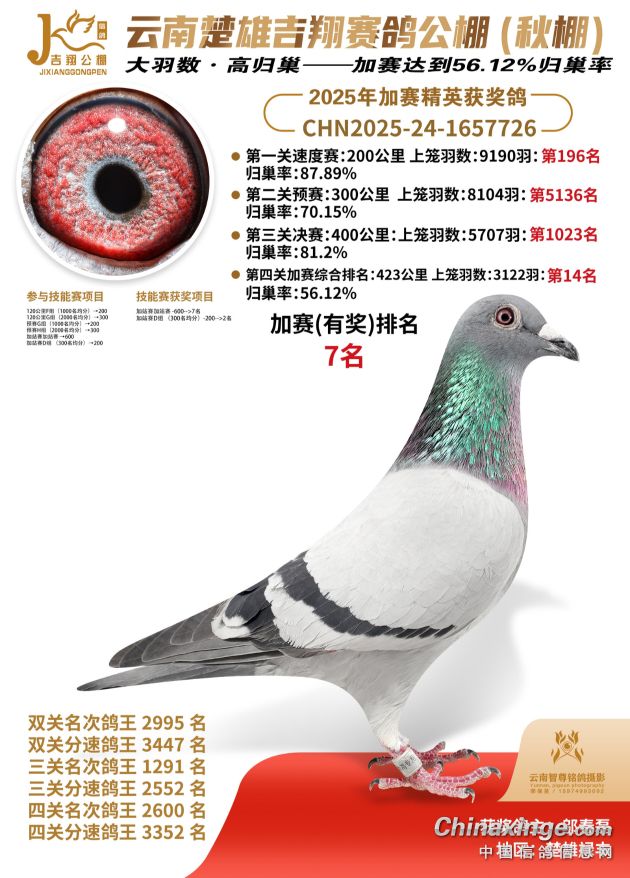 今年春赛300公里83名,400公里28名,羽数较少1500羽。