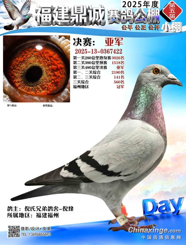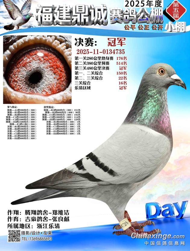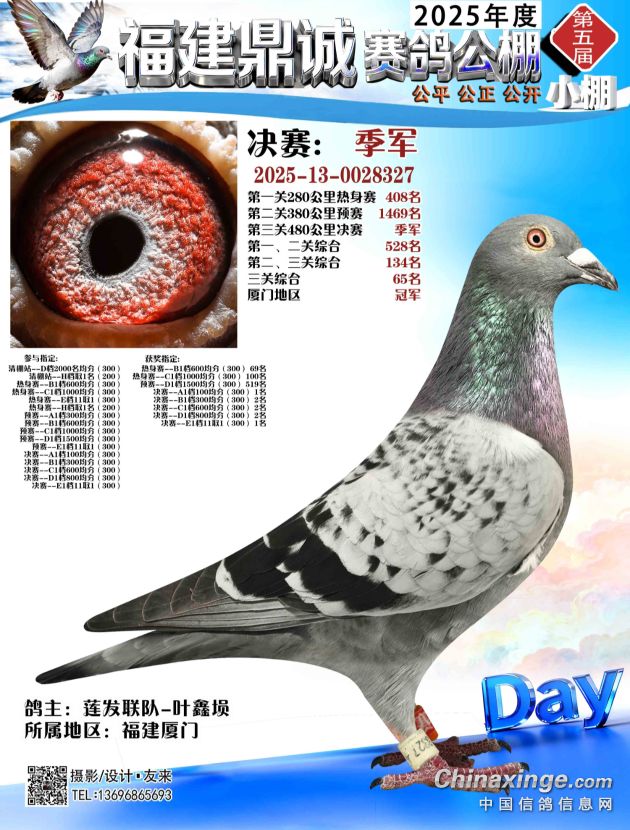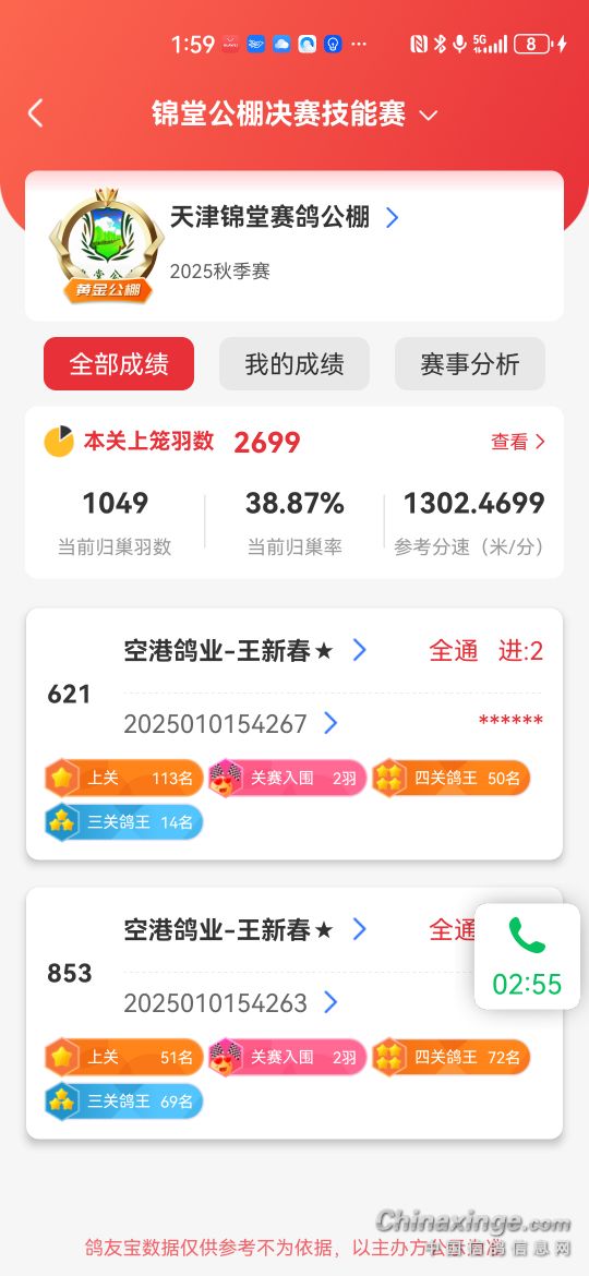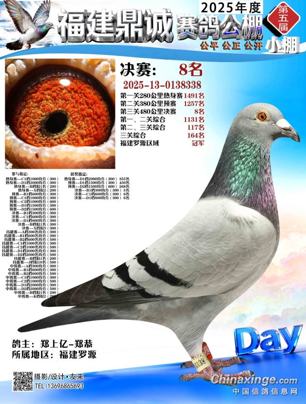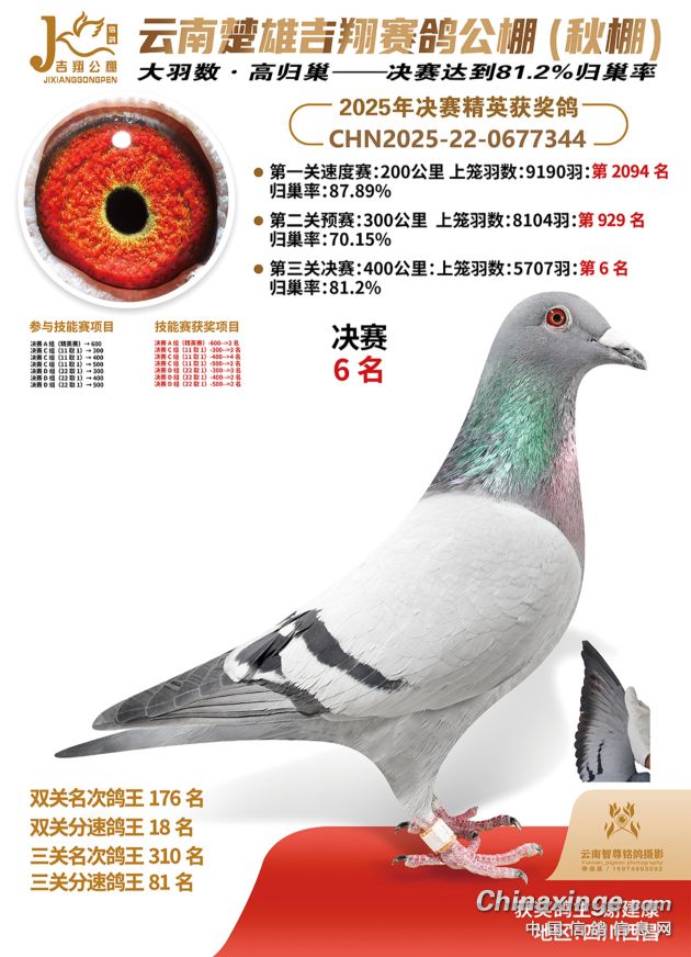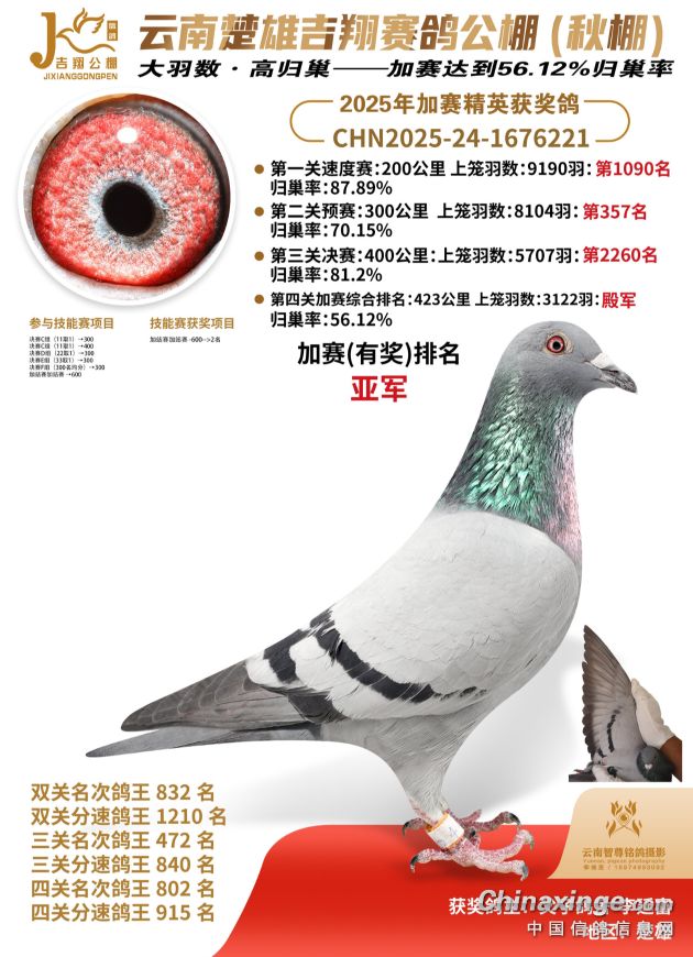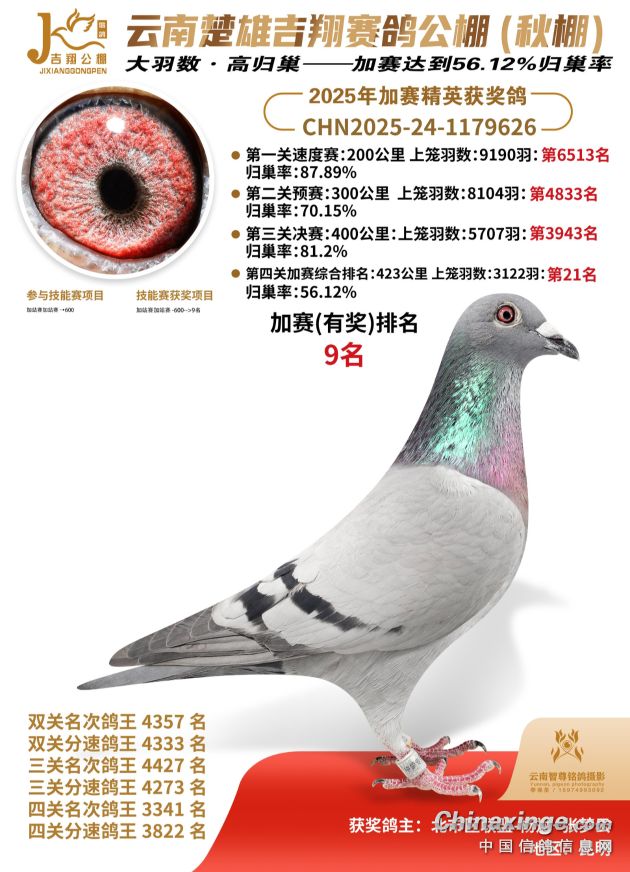 今年春赛300公里83名,400公里28名,羽数较少1500羽。