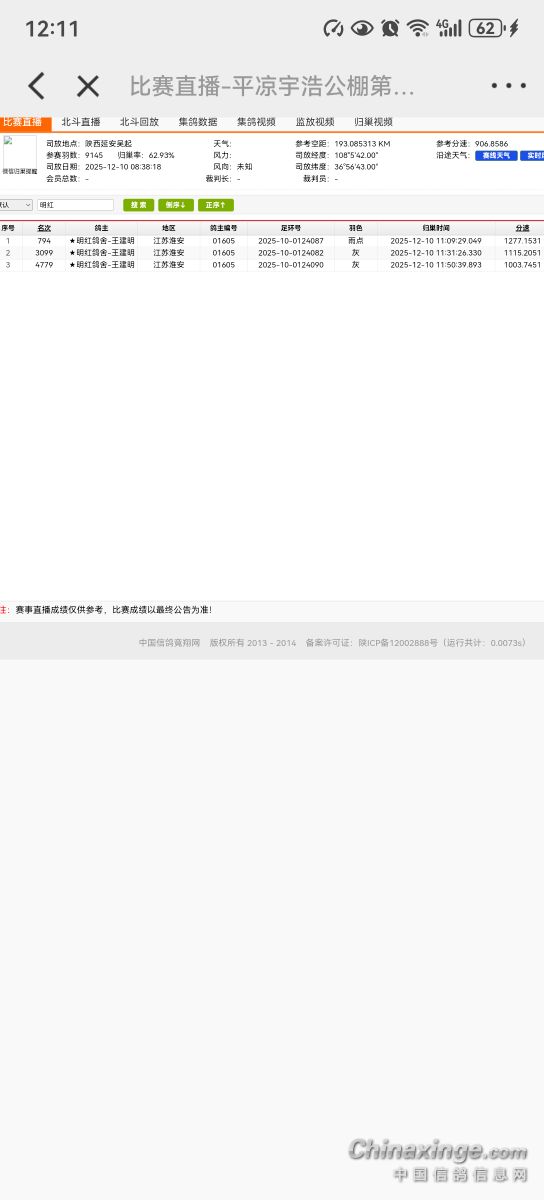 就3只鸽子参加洪泽湖第一关400公里,老规矩预测一下,55名第一个回来,最后回来的是小黑皮。