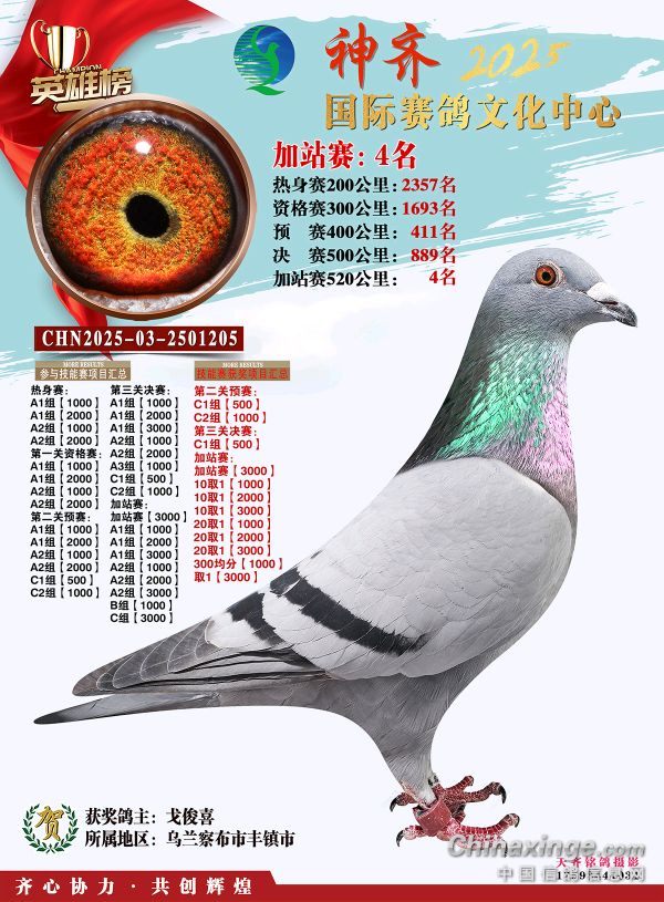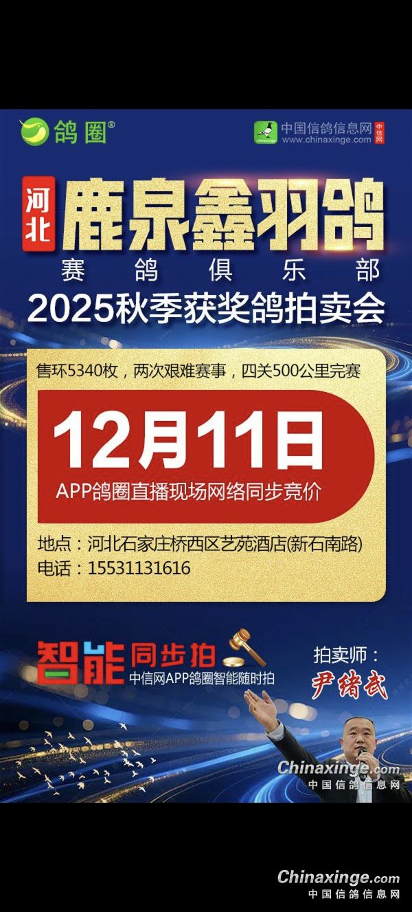 河北鹿泉鑫羽鸽俱乐部获奖鸽拍卖