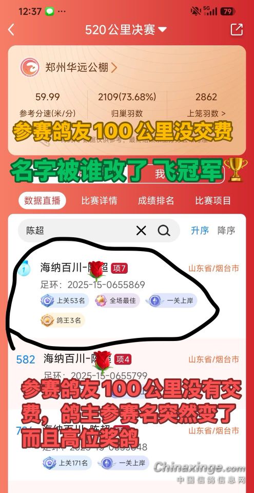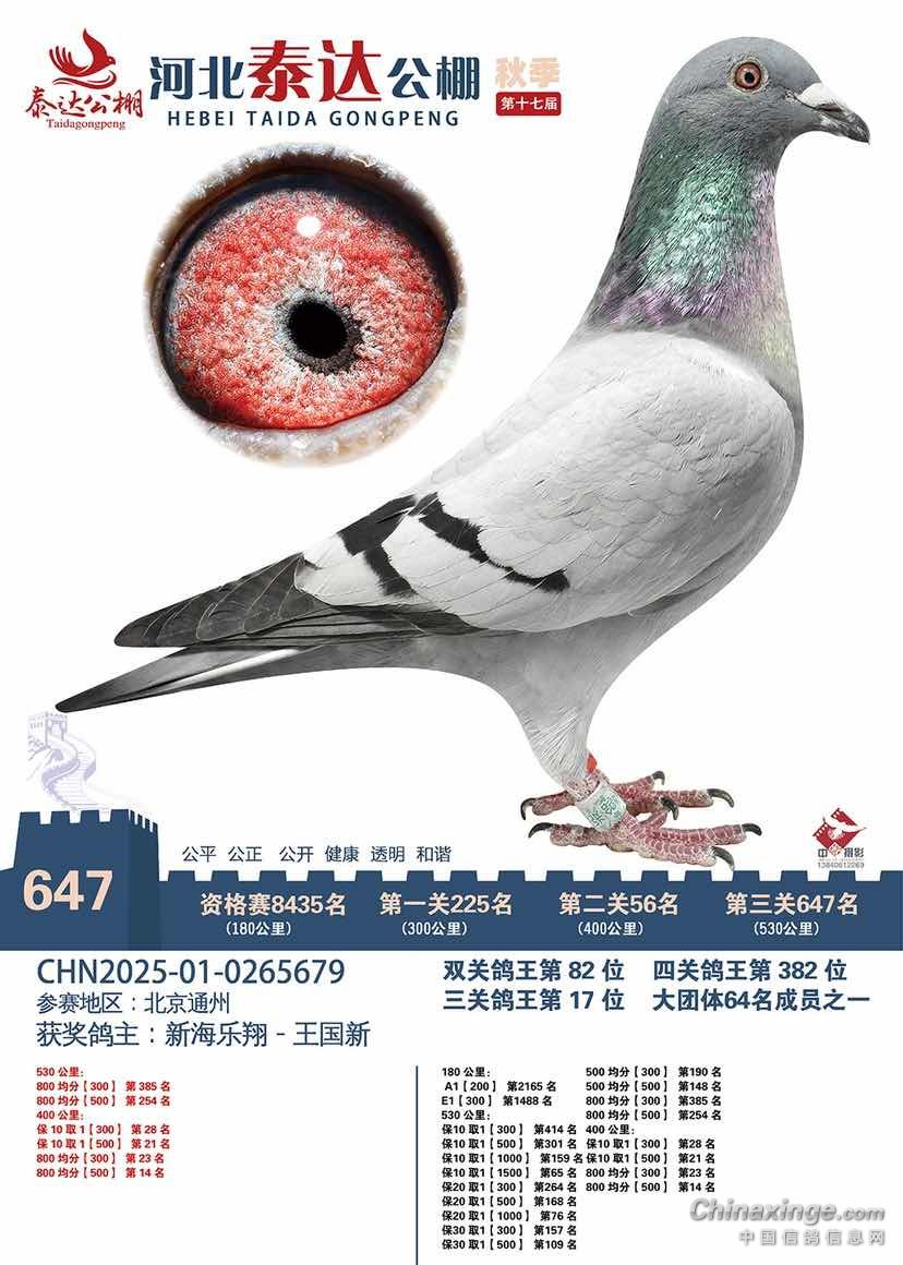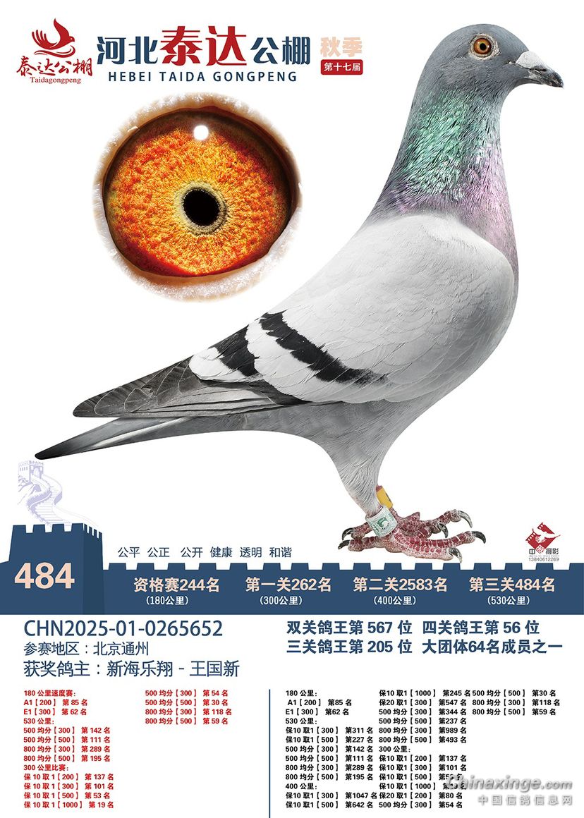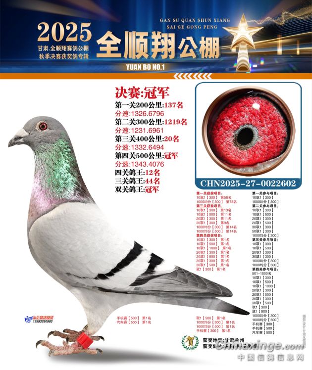 其实平凉358名更适合打加站赛,同父母出的特比环2025-32-0178802从速度赛开始越飞越好,虽然三关综合只进奖485名,但后两关都当天回来,都比五关综合鸽王76名快,特别是第五关580公里当天4点多就回来了,第六关700公里绝杀关第二天中午到家的。0124082是它们的同父异母,希望能有更好的表现。